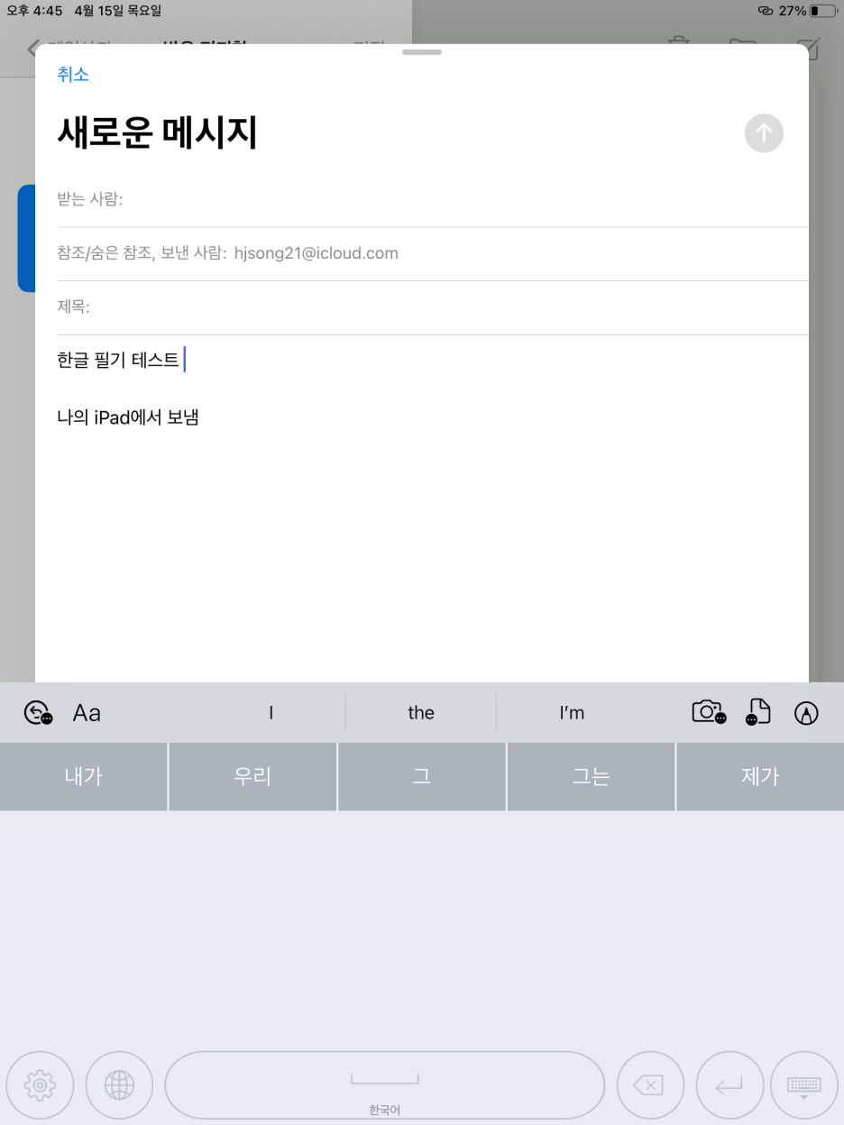 이 기능을 사용하면 웹브라우져의 입력필드등 아이패드의 모든 입력 필드 뿐만 아니라 노트앱 등에서도 사용 가능합니다.