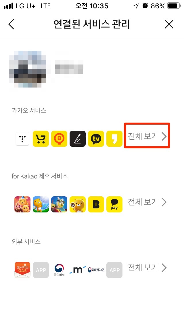 언제 연결 했는지도 모르는 서비스들... 카카오 서비스, 제휴 서비스, 외부 서비스등 다양합니다.