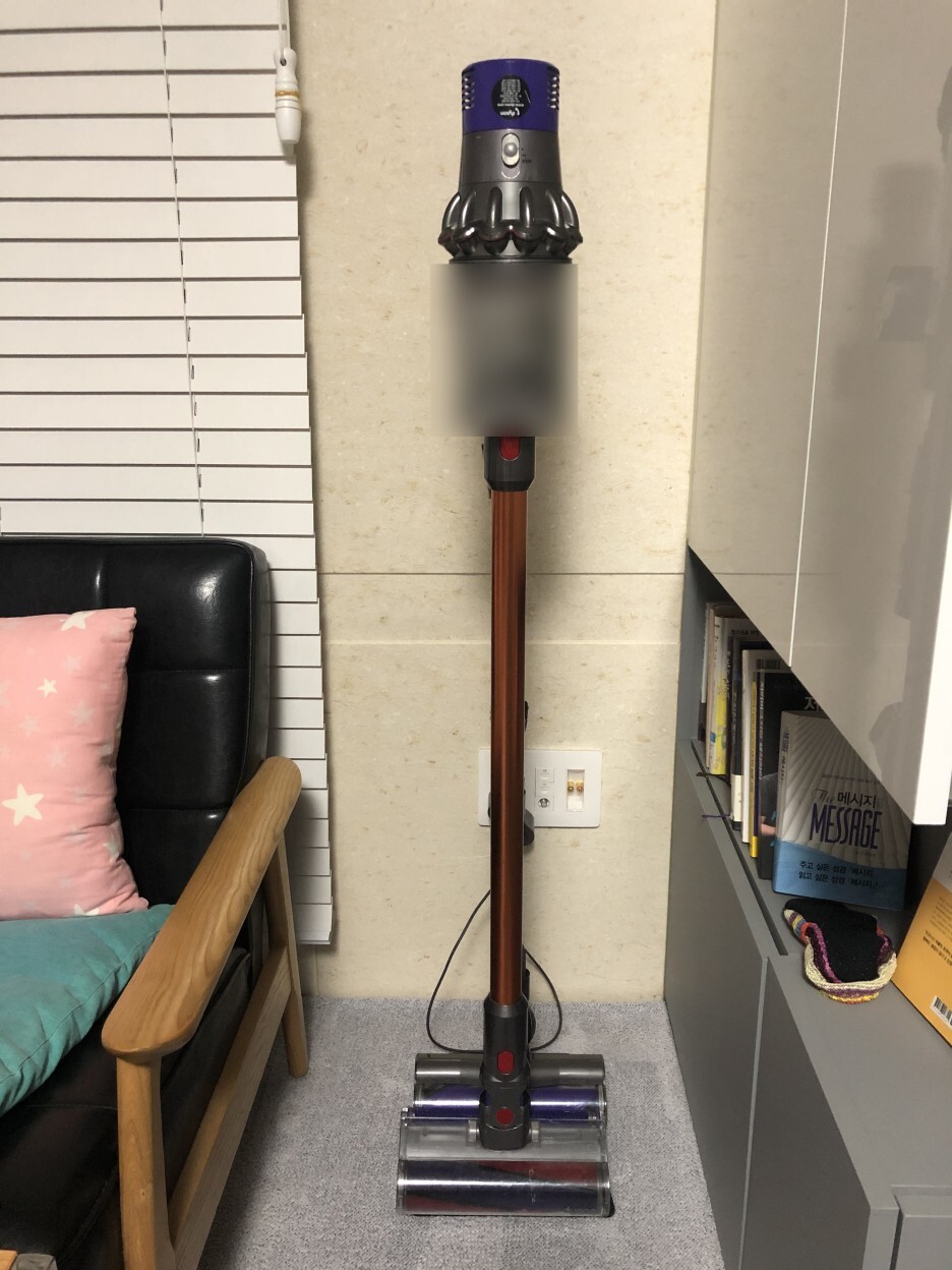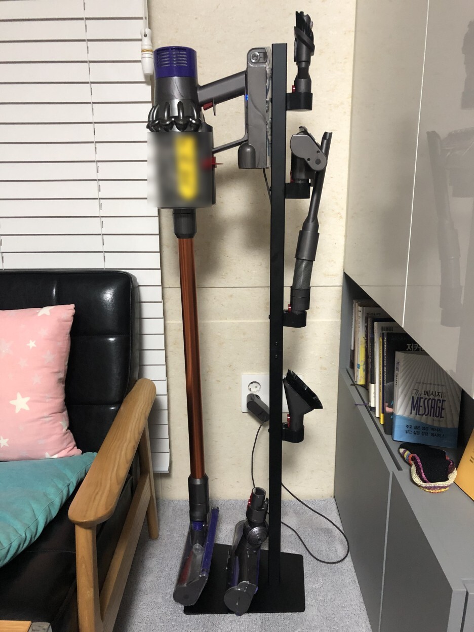 그런데, 다이슨 청소기는 기본적으로 거치대가 없습니다. 그래서 방 한쪽 구성에 엉거주춤 세워 놓거나 눕혀놓고 있는데 별로 보기가 안좋습니다.