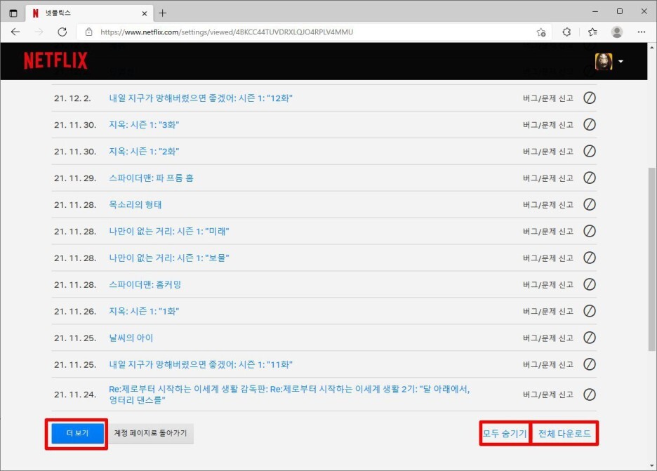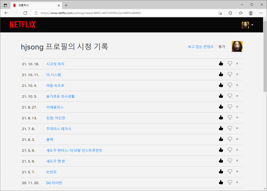 넷플릭스 시청기록, 평가한 콘텐츠 확인하기