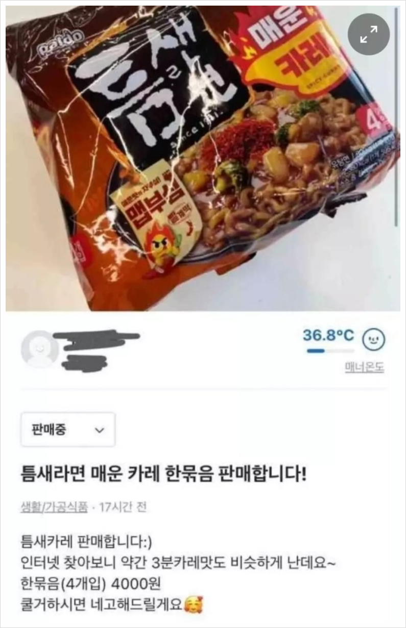 오늘 SNS에서 보게된 당근마켓 '틈새라면 매운카레' 논란의 이미지...