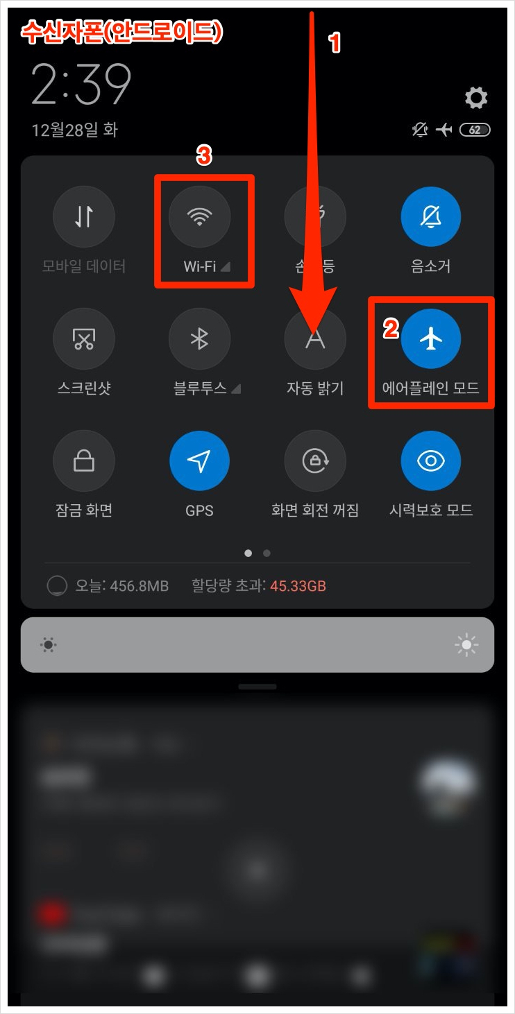 이제 다시 [에어플레인 모드]를 비활성화 합니다.
