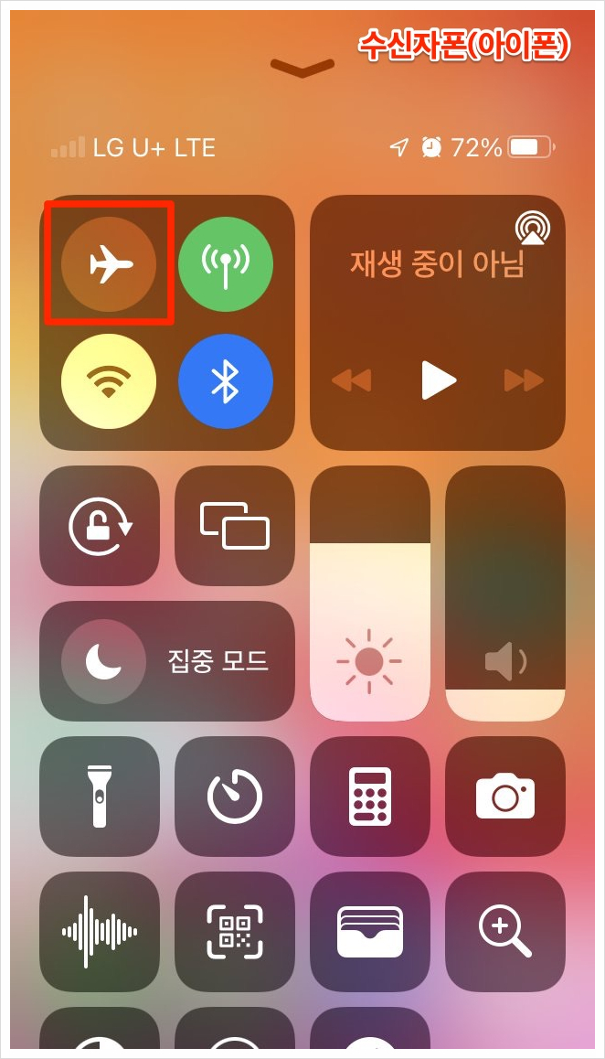 이제 다시 제어센터를 열어 [에어플레인 모드]를 비활성화 합니다.