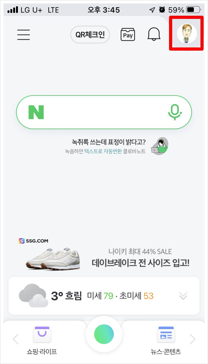 이제 QR 체크인을 하기 전에 네이버앱을 실행시키고 흔들어주세요~~~