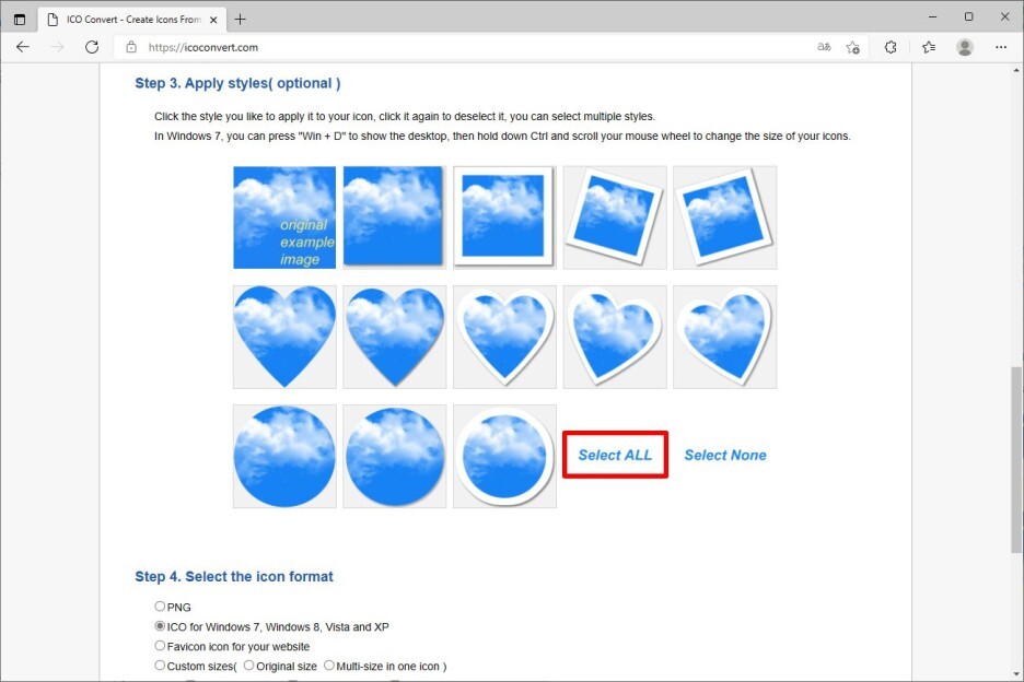이 사이트는 PNG, JPG, SVG 세종류의 파일만 ICO 파일로 변환하는것을 지원합니다.
