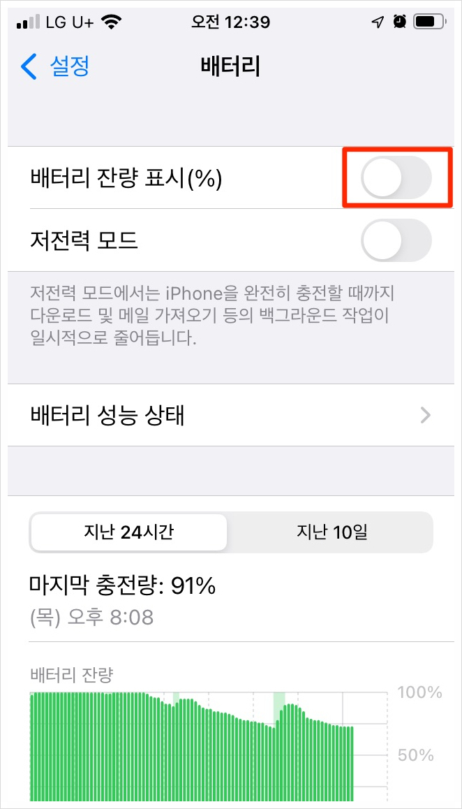 아이폰 배터리 잔량 퍼센트로 표시하기