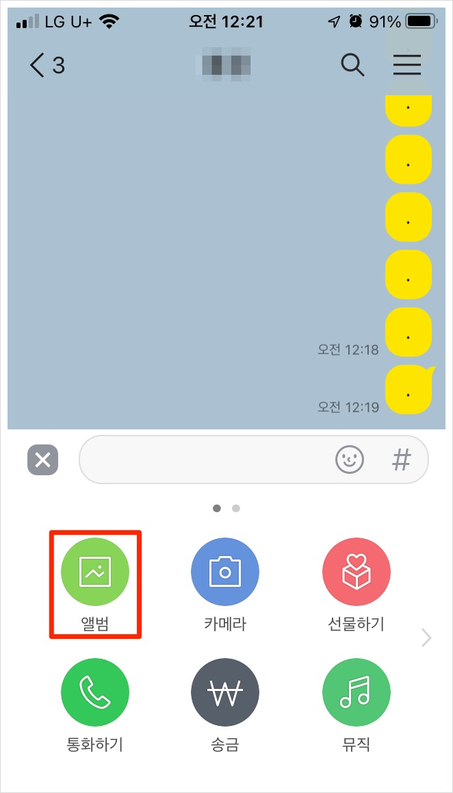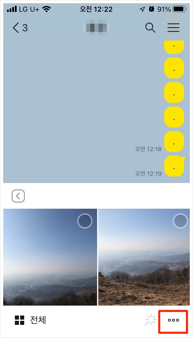 사진을 보내기 전에 오른쪽 하단의 [---] 버튼을 클릭합니다.