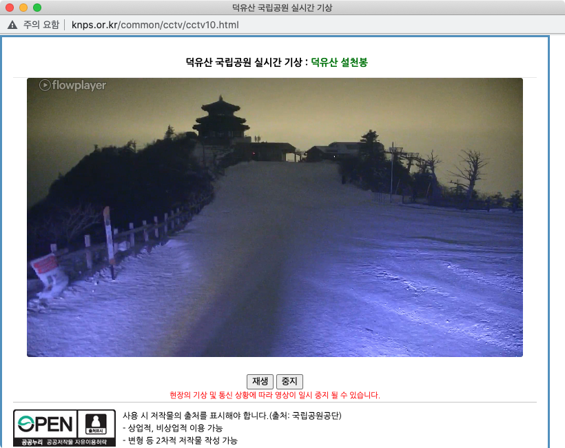 하지만 덕유산에는 정상에 CCTV가 있어서 현재의 상황을 확인할 수 있습니다.