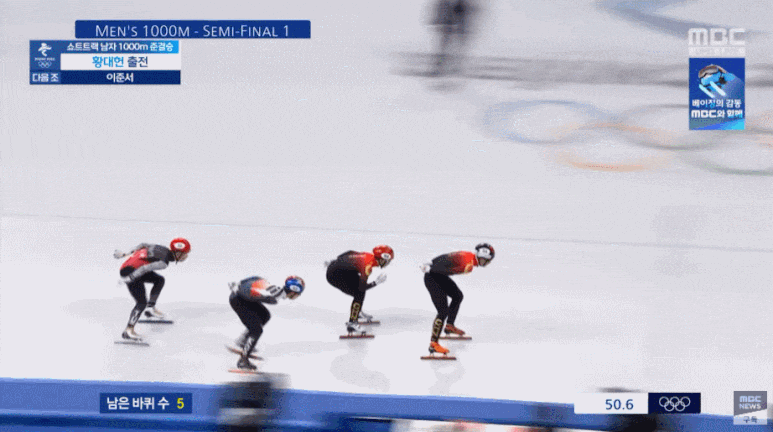 쇼트트랙 남자 1000m 결승전도 마찬가지 입니다.