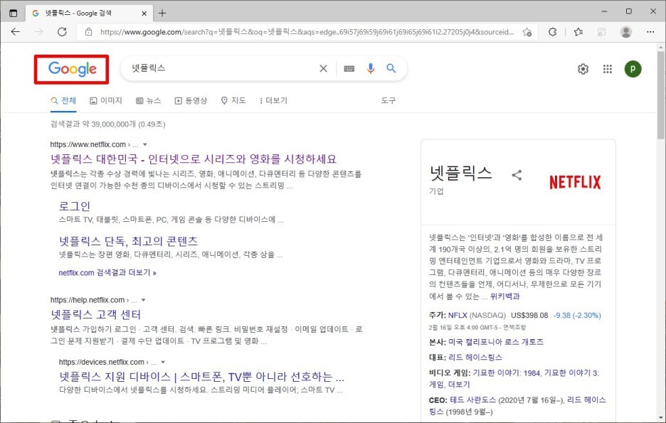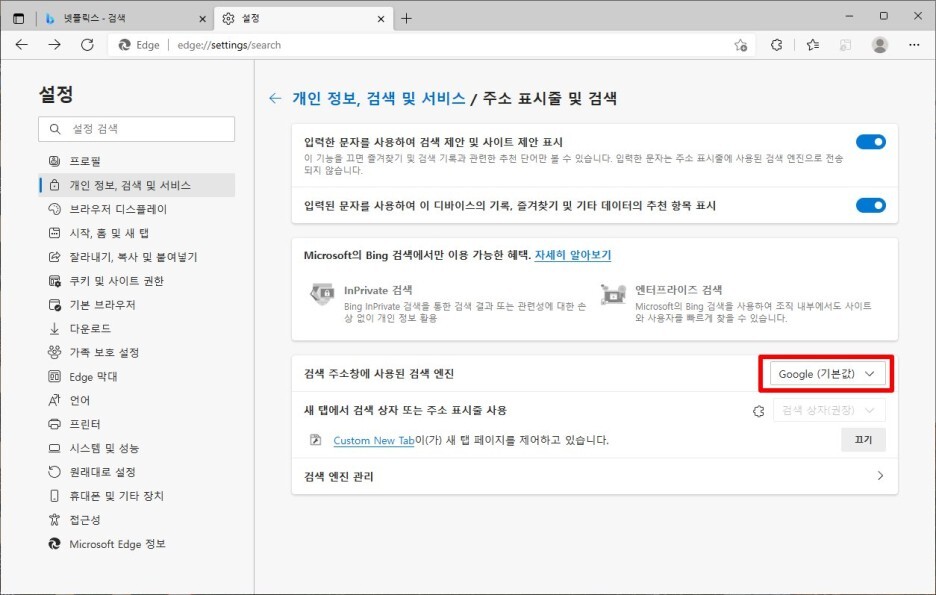 마이크로소프트 엣지(Edge) 기본 검색엔진 구글로 변경하기