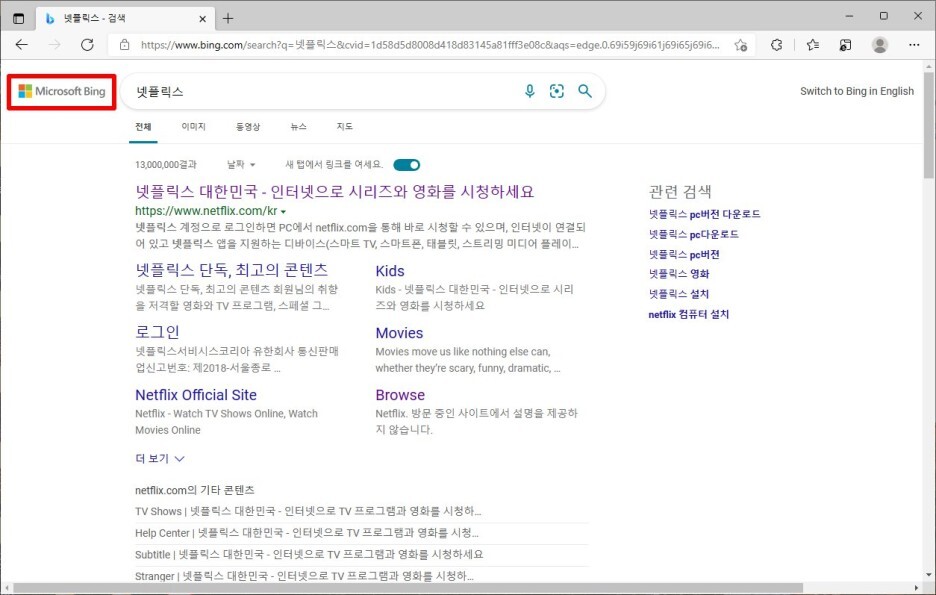 그랬더니 Bing 검색창에서 검색이 되네요....