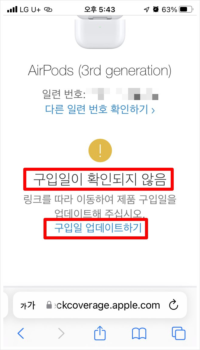 애플 에어팟을 구매한 후, 제품을 구매한 후 정상적인 AS 받기 위해서는 정품 등록을 해야 합니다.