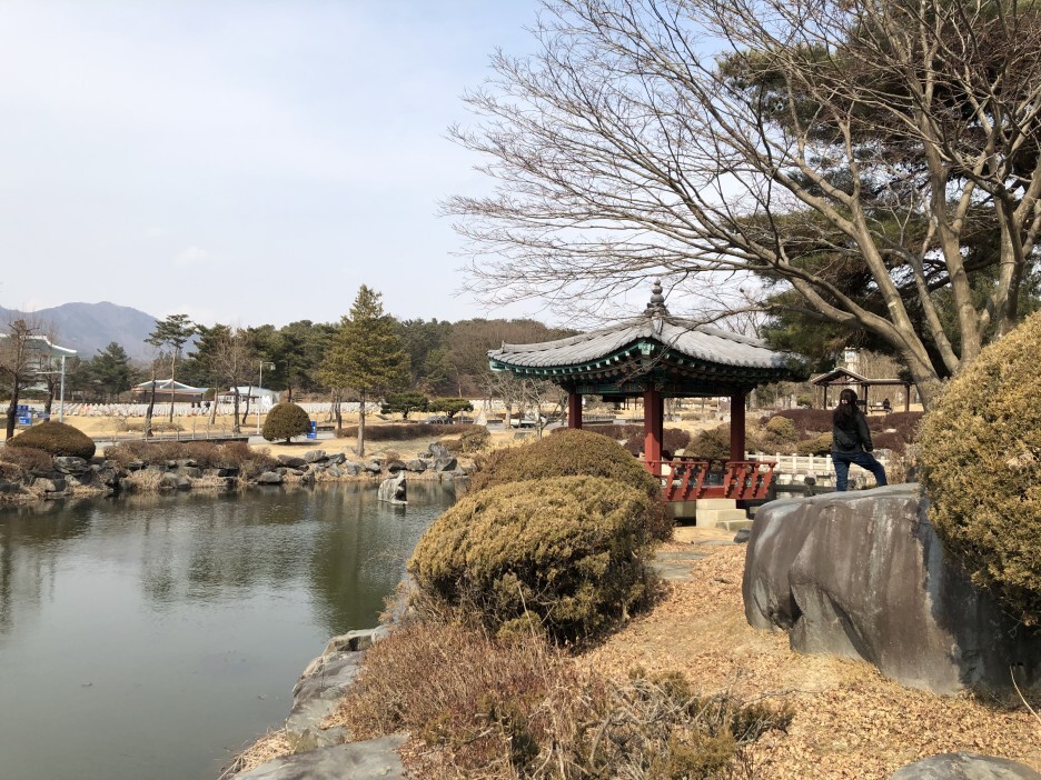 거의 끝부분에서 볼 수 있는 호수와 정자.