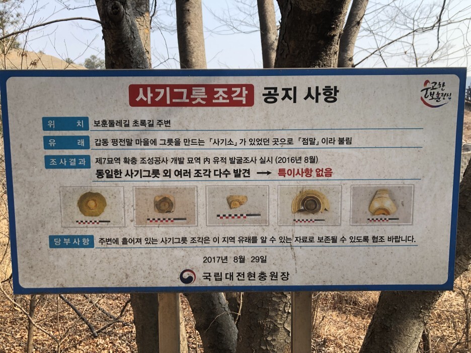 흩어져 있는 사기그릇 조각은 보존될 수 있도록 협조 바란다네요... 즉, 가져가지 말라는 말이지요...