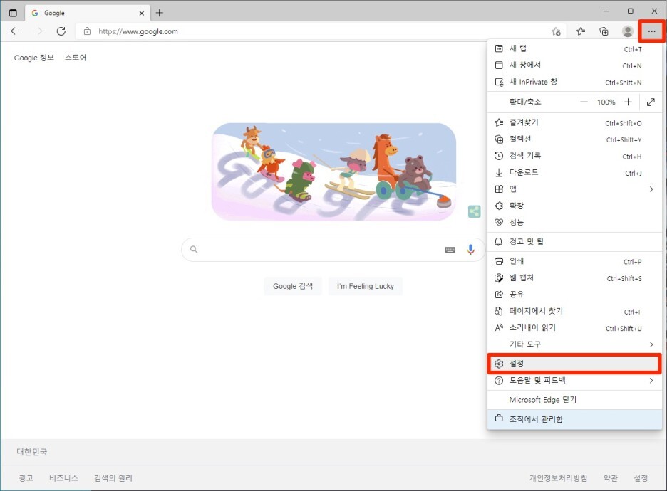 오른쪽 상단의 [...]을 클릭한 후, 설정을 클릭합니다.