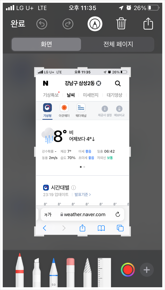 아이폰에서 사파리 웹브라우저 스크롤 캡쳐