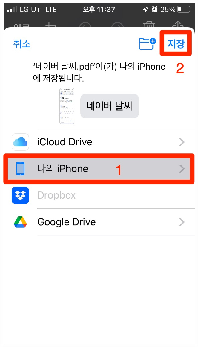 [완료] 버튼을 클릭한 후 [파일 앱에 PDF 저장] 버튼을 클릭합니다.