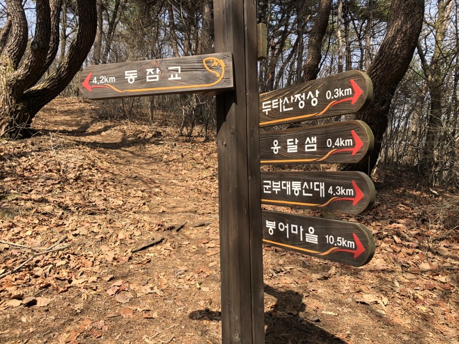 온 길로 내려가지 않고 좀 돌기 위하여 동잠교 방향으로 향함.