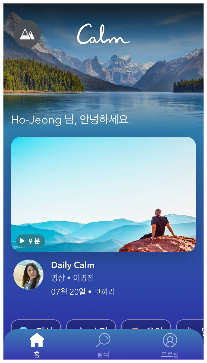 최근 지인으로부터 명상앱 Calm을 소개받았습니다.