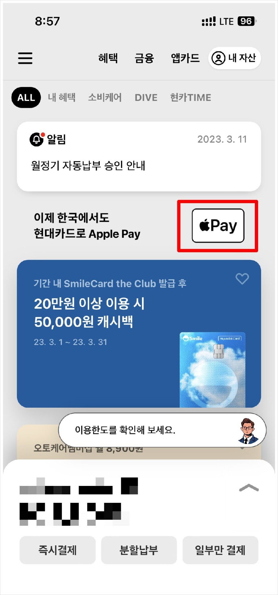 드디어 2023년 3월 21일 오늘 부터 애플페이가 서비스를 시작했습니다.