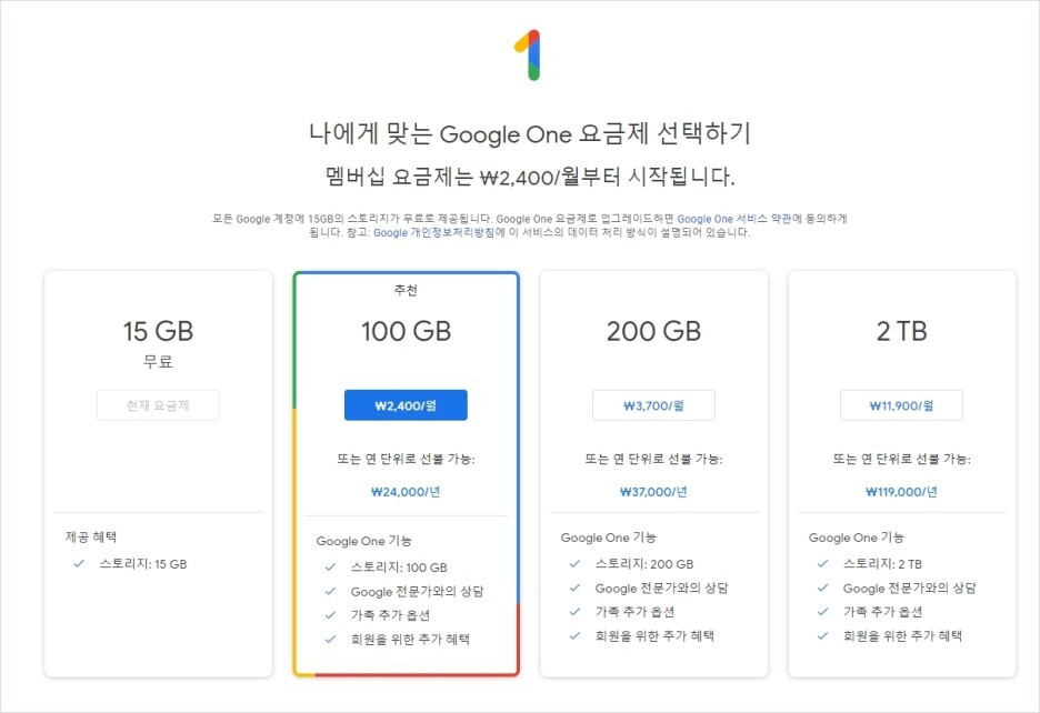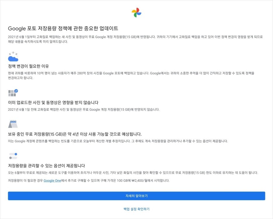 - 픽셀 6 이후 : 15GB 용량에 포함. 구글포토 유료