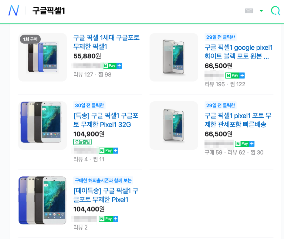 가격을 검색해보니 구글 픽셀 1세대는 32GB, 리퍼폰 기준 배송비 포함 약 10만원에 구매할 수 있습니다.