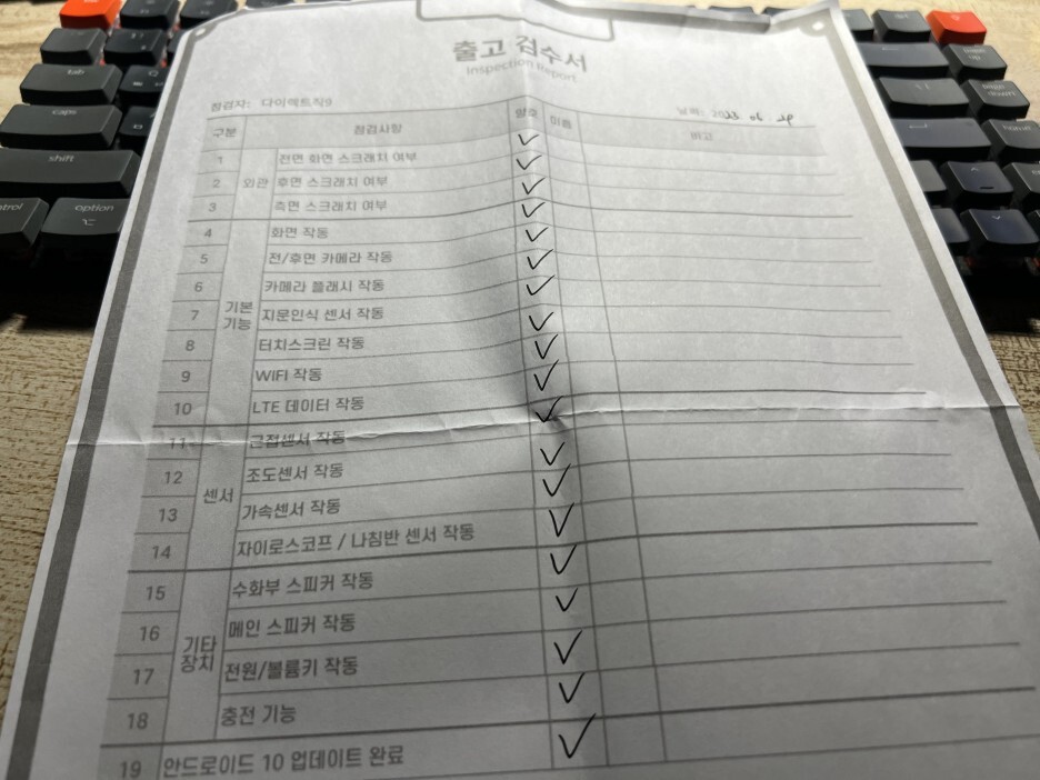 형식적일지는 모르지만... 이렇게 출고 검수서까지 보내주니 왠지 믿음이 갑니다. ^^