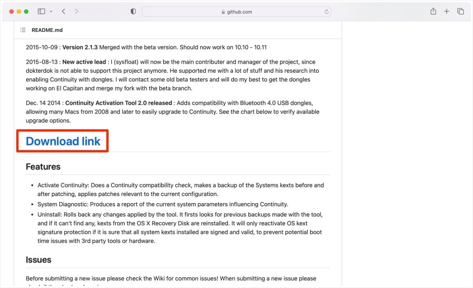 1) 다음 링크에 접속하여 연속성 활성화 툴(Continuity-Actication-Tool)을 다운받습니다.