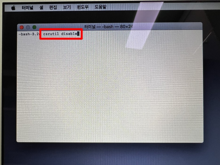 4) 터미널에서 다음 명령어를 입력하여 시스템 무결성 보호(System Integrity Protection) 기능을 해제합니다.