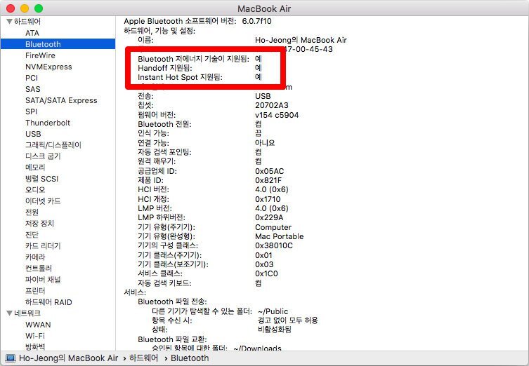 handoff 및 Instant Hot Spot 기능이 지원되고 있는 것을 확인할 수 있습니다.