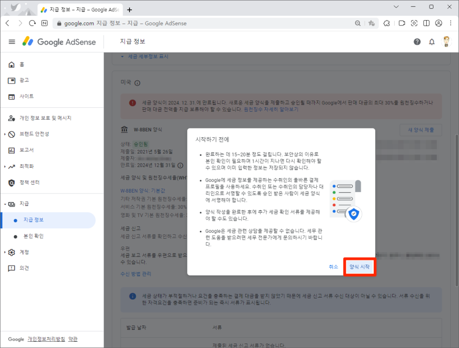 #구글 #애드센스 #미국 #세금양식 #제출하기
