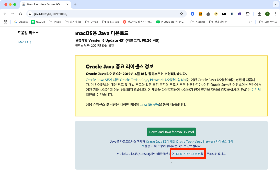M 시리즈 맥일 경우는 바로 아래의 [ARM64 버전]을 클릭하여 다운로드 합니다.