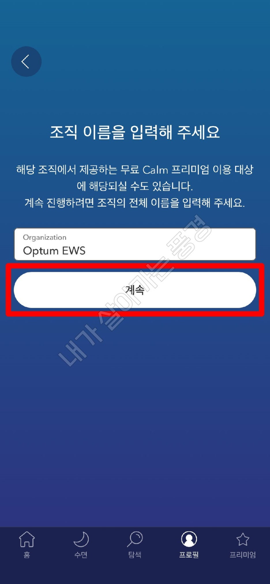 현재 공유되고 있는 [조직 구독 연결]을 사용하여 Calm 프리미엄을 무료로 사용하는 방법은 특정 회사의 직원들에게 복지 차원에서 제공해주는 혜택을 몰래 사용하는 방법인 것 같습니다.