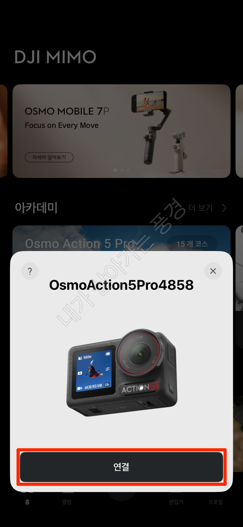 3) 기기 목록 중 내 기기(저의 경우 Osmo Action 5 Pro)를 선택합니다.