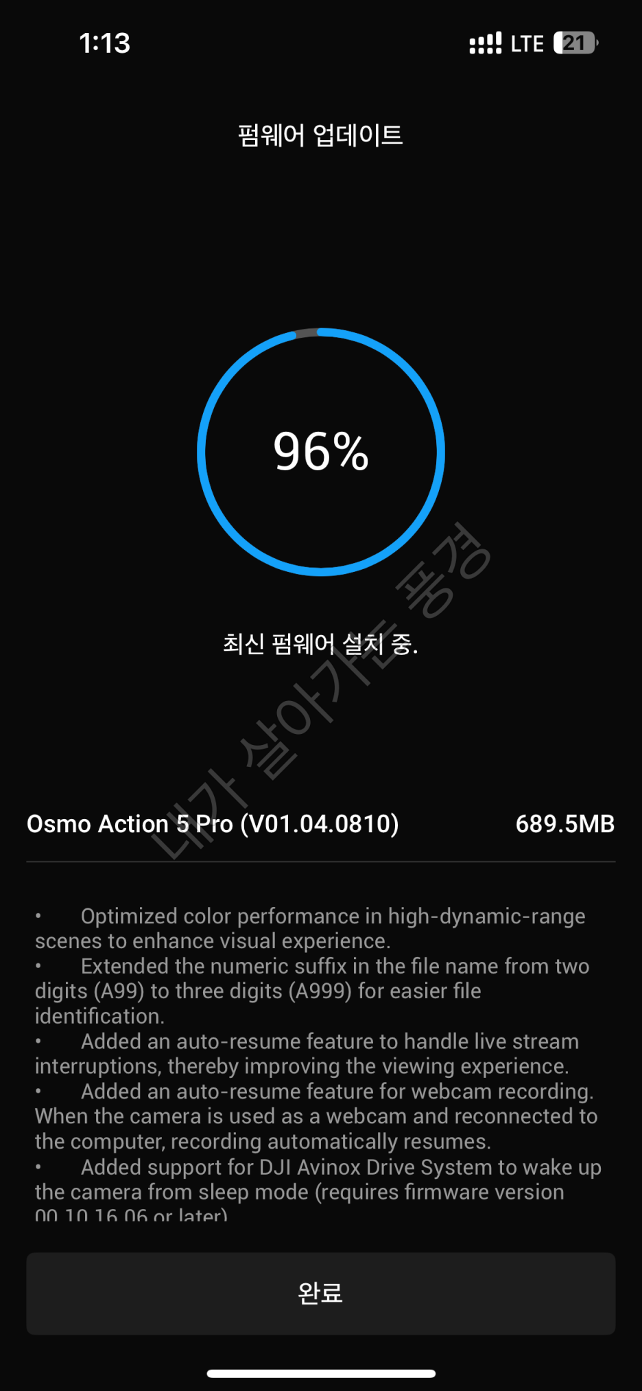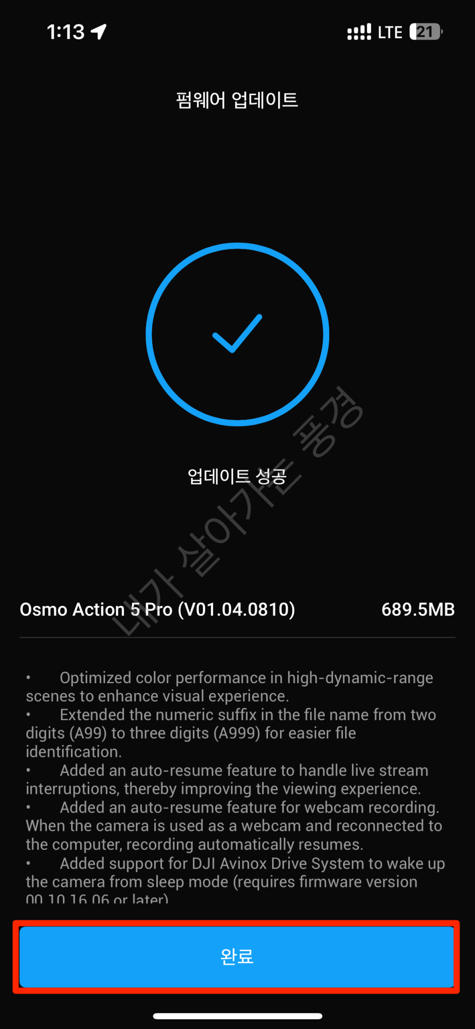 4) 업데이트가 완료되었습니다. [완료] 버튼을 클릭합니다.