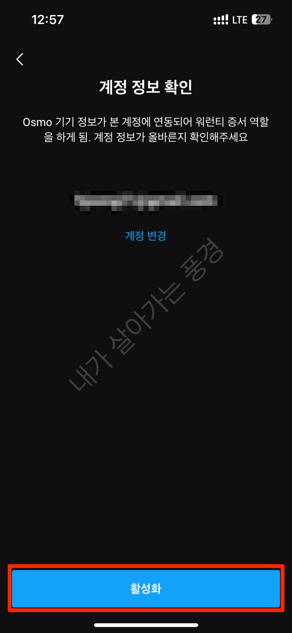 2) 이메일이 정확한지 확인 후 [활성화] 버튼을 클릭합니다.