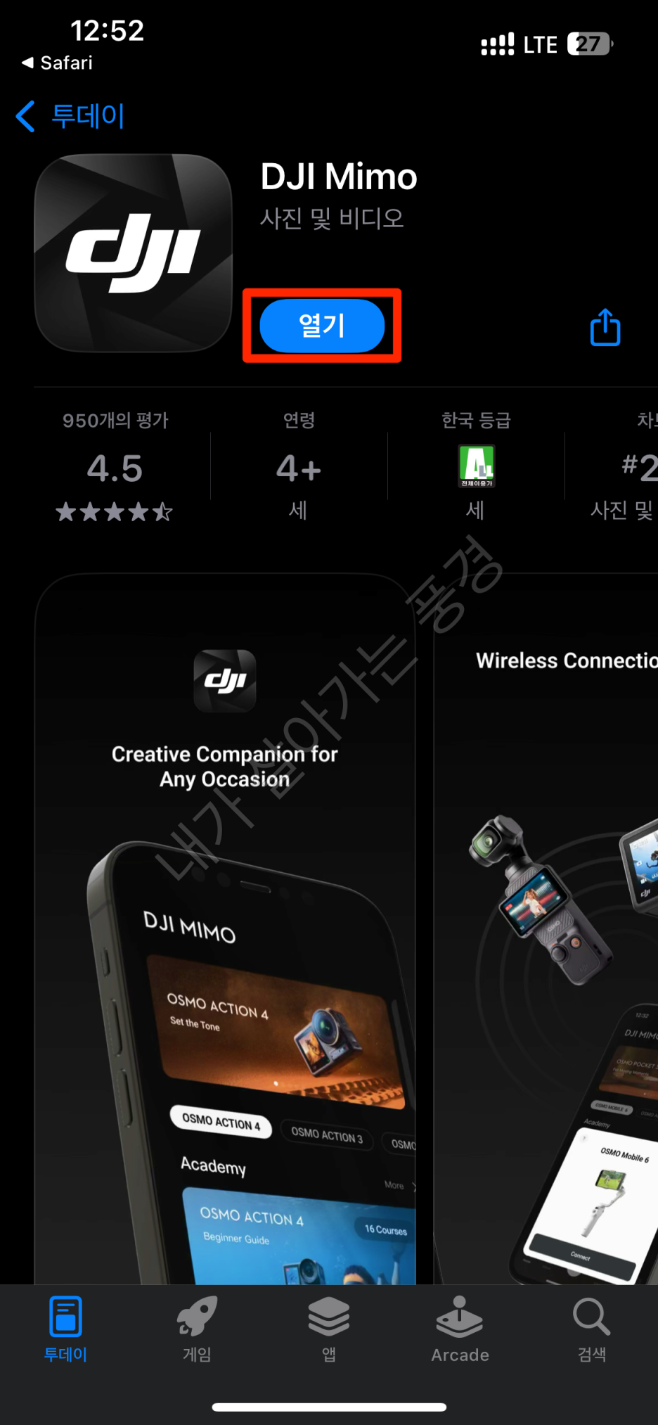 3) 앱스토어에서 "DJI Mimo" 앱을 [설치] 합니다. 설치가 완료되면 [열기]를 클릭하여 앱을 실행시킵니다.