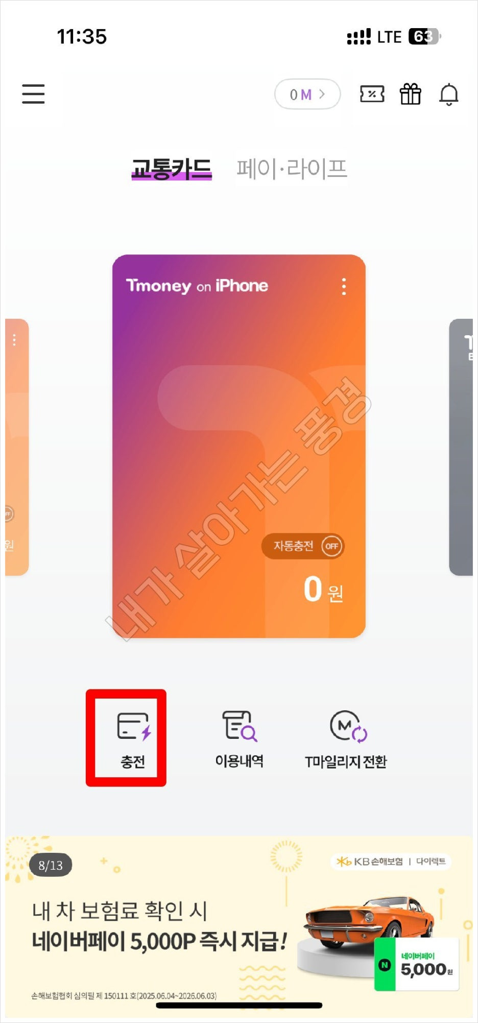 그럼 티머니에 충전하는 방법을 알아보겠습니다.