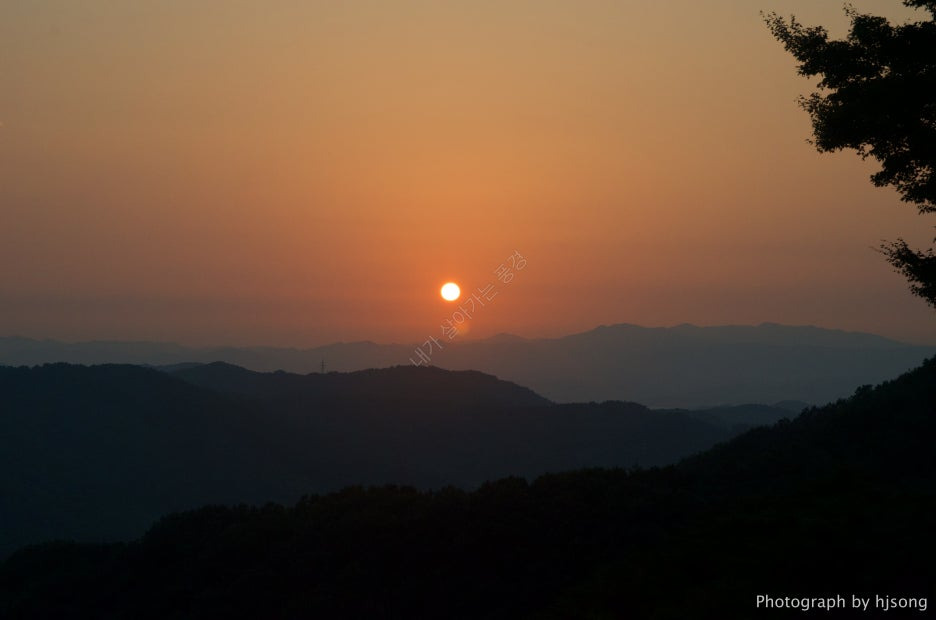 서쪽으로 펼쳐진 넓은 평야와 금강 하류를 배경으로 지는 석양...