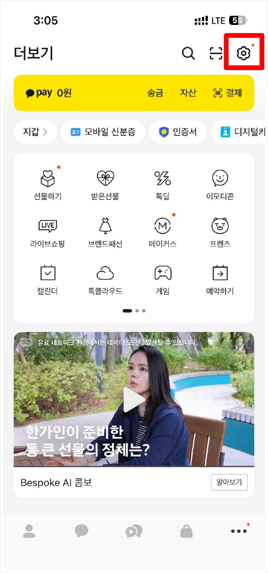 화면 하단 오른쪽에 보이는 "더보기" 탭을 눌러주세요.