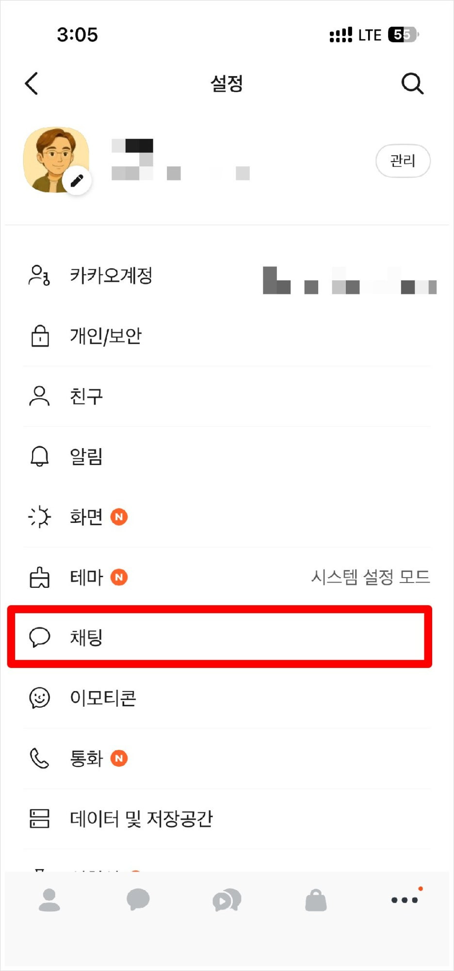 1) 카카오톡 설정 들어가기