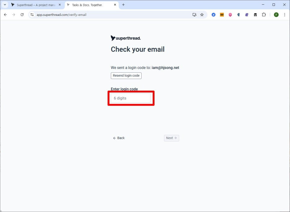 3) 저는 이메일 회원가입을 했는데요, 이메일로 코드를 보내주면 해당 코드를 입력합니다.