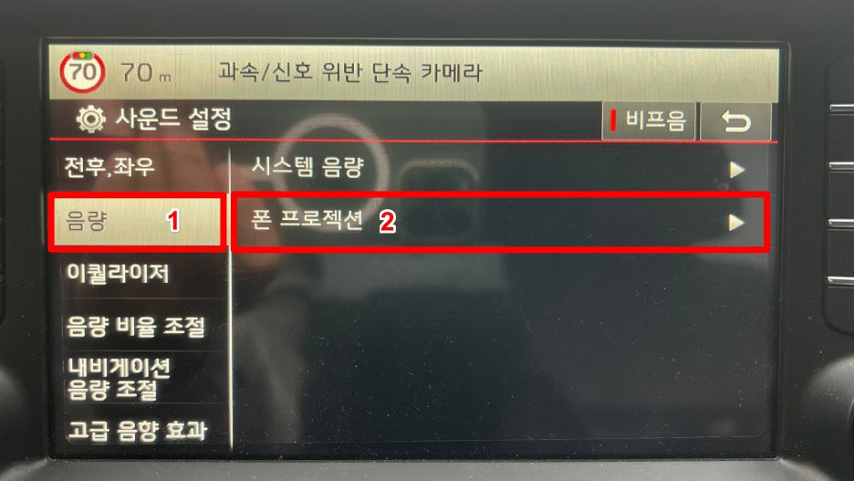 - [음량] 선택 후 [폰 프로젝션] 메뉴를 선택합니다.