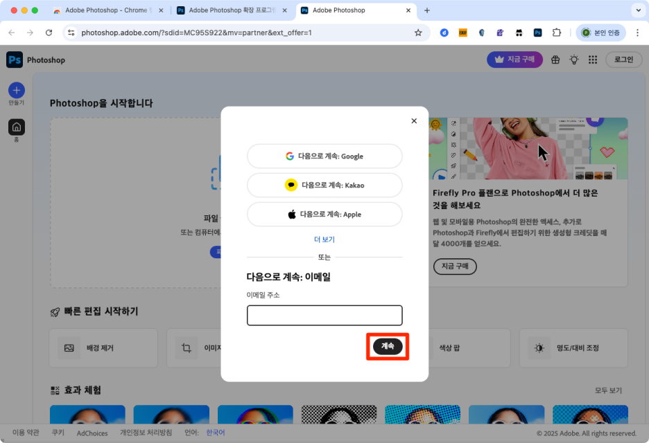 4) Adobe 계정으로 로그인합니다.