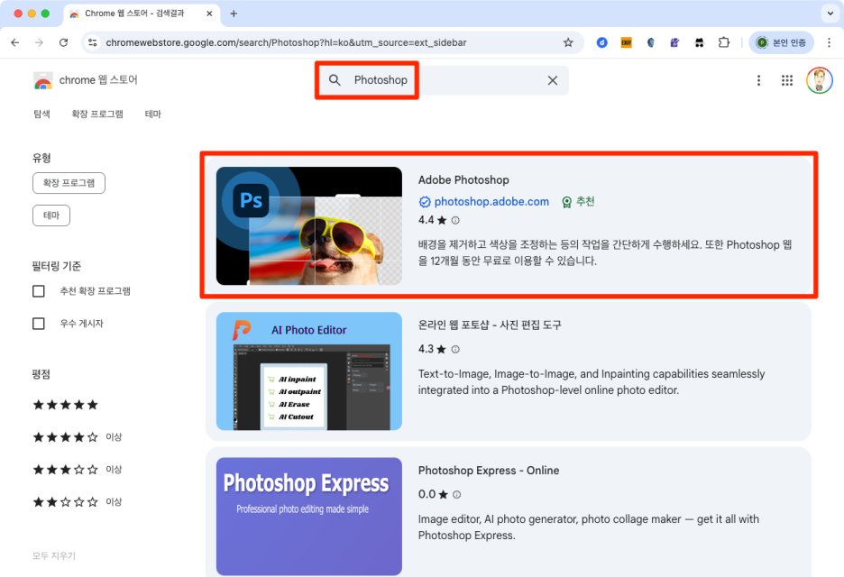 Adobe가 2025년 11월 20일, Chrome 웹 스토어에 Photoshop 확장 프로그램을 정식 출시했습니다!